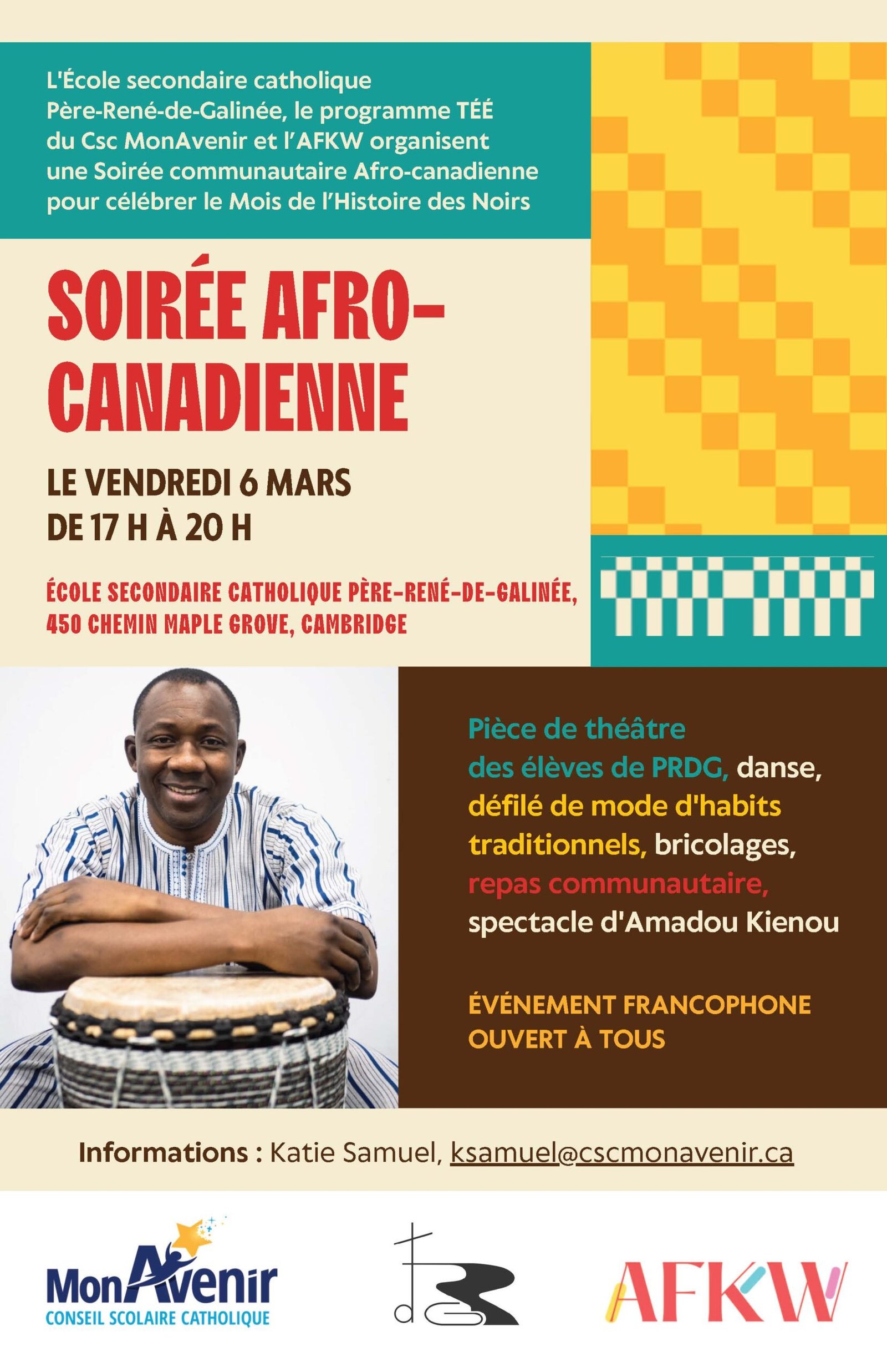 Pour plus d'informations, contacter Céline 438 883 8199 ou coordination@afkw.ca